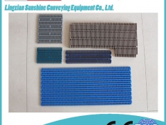 塑料网带是利用工程塑料制作的,链板拼装而成的。网带以互锁方式或砌砖方式互相交错,并由全长销杆组装在一起,这种设计从根本上提高了传送带的强度。挡板和侧板也可以用铰接销互锁,成为输送带整体部件之一。塑料网带形式多样,拼装灵活,更换方便。有平板、平格、突肋、开孔等多种形式。适用于猪、羊、鸡、鸭屠宰分切加工,膨化食品生产线,水果分级,包装线,水产加工生产线、速冻食品生产线、电池制造生产、饮料制造业、制罐工业、化妆品业等输送作业。